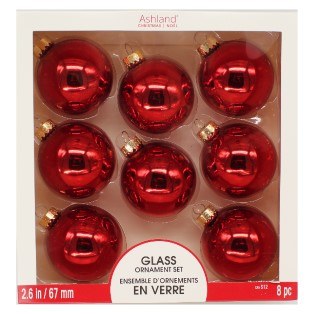 THIS IS AN 8 PACK SET OF GLASS CHRISTMAS BALLS. 2.5" / 65 MM.
