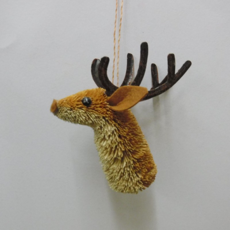 THIS CHRISTMAS ORNAMENT IS MADE OF FIBER FROM THE BURI PALM TREE. IT MEASURES APPROX. 3" X 3" AND IS A BRUSH REINDEER BAUB.