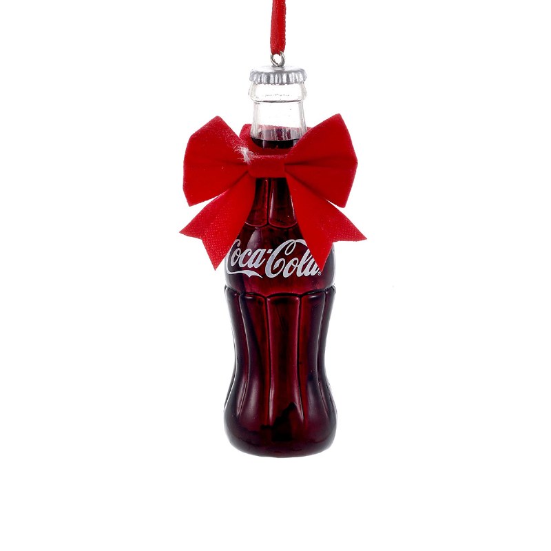THIS CHRISTMAS ORNAMENT IS AN ORIGINAL COCA-COLA BOTTLE WITH A RED RIBBON. ITEM IS APPROX 4.5" X 1.5", AND IS MADE OUT OF ACRYLIC.