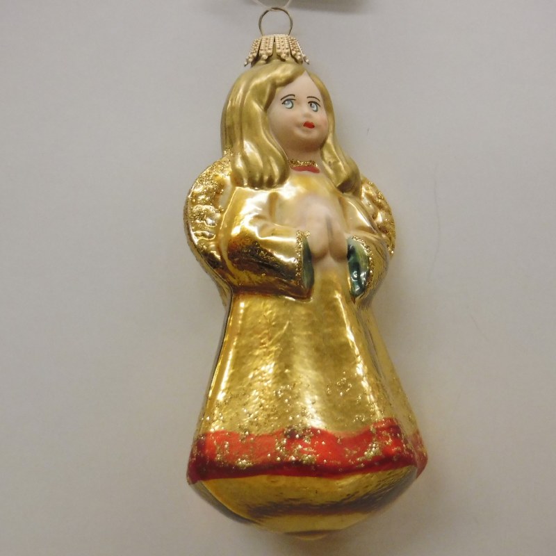 THIS CHRISTMAS ORNAMENT IS A GOLDEN ANGEL. ITEM IS APPROX 5" X 2.25" MADE OF GLASS