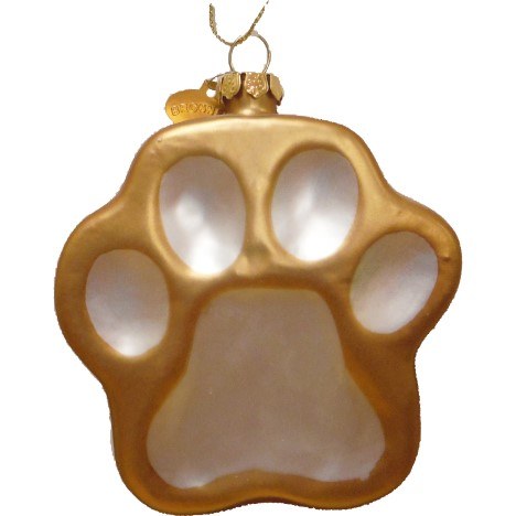 THIS CHRISTMAS ORNAMENT IS A GLASS PAW YELLOW. ITEM IS APPROX 4" X 3.5"