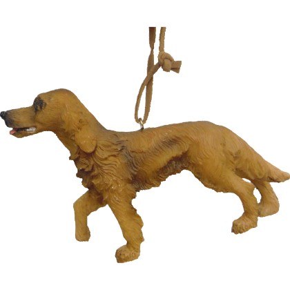THIS CHRISTMAS ORNAMENT IS MADE OF RESIN AND IS OF A GOLDEN RETRIEVER. MEASURES APPROX. 3" X 4"