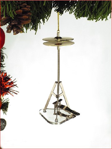 THIS METAL CHRISTMAS ORNAMENT IS IN THE MUSICAL INSTRUMENT GROUPING AND IS OF HIGH HAT SYMBLES. MEASURES APPROX. 4.5".