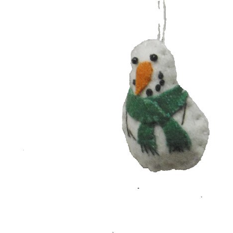 THIS CHRISTMAS ORNAMENT IS A MINIATURE SNOWMAN WITH A RED SCARF. ITEM IS APPROX 1.5" X 1.25"