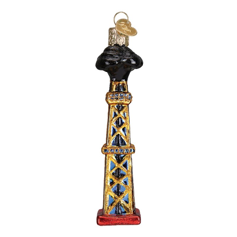 THIS CHRISTMAS ORNAMENT IS MADE OF GLASS AND IS PART OF THE OLD WORLD COLLECTION. IT MEASURES APPROX. 4.75" X 1" AND IS A OIL DERRICK.