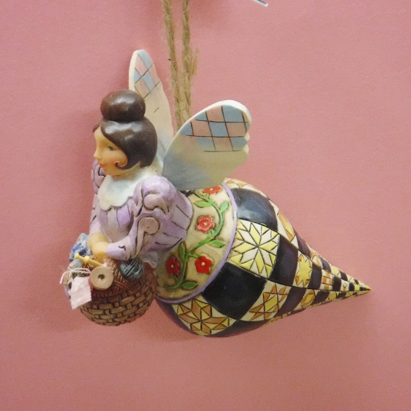 THIS CHRISTMAS ORNAMENT IS FROM THE JIM SHORE COLLECTION, IT IS MADE OF RESIN AND MEASURES APPROX. 3" X 3.75" AND IS A QUILTING BEE.