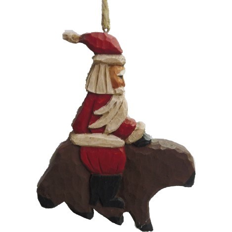 THIS CHRISTMAS ORNAMENT IS MADE OF RESIN AND MEASURES APPROX 5" X 4". THIS ORNAMENT IS OF SANTA ON BEAR.