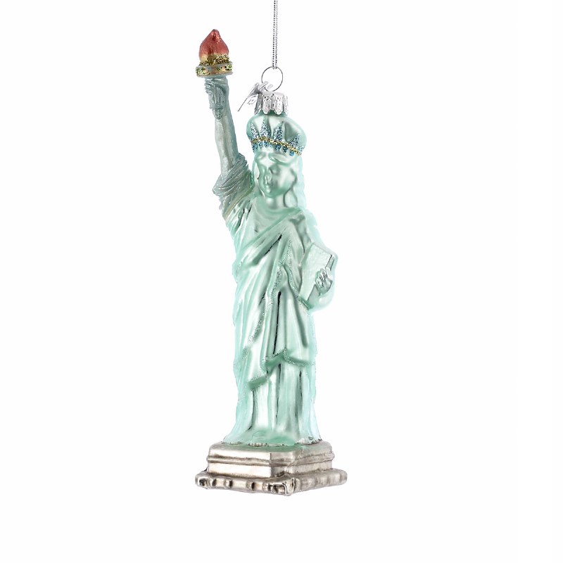 THIS GLASS CHRISTMAS ORNAMENT IS OF THE STATUE OF LIBERTY IN NEW YORK CITY AND MEASURES APPROX. 5.25" X 1".