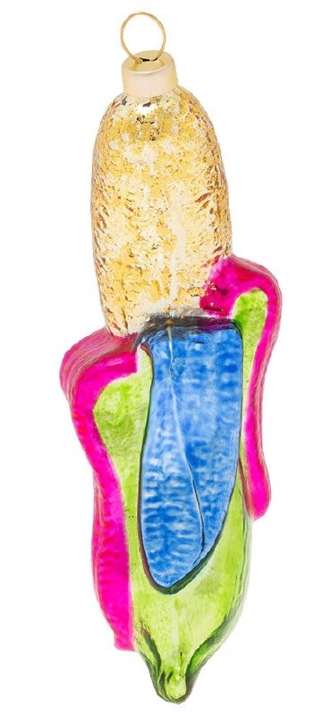 THIS CHRISTMAS ORNAMENT IS MADE OF GLASS AND IS COLORFUL. IT MEASURES APPROX. 2" X 1.75" X 6". Located in the Christmas Shoppe in room A, on a wall - board number 2 Printed maps are available to assist in finding it.