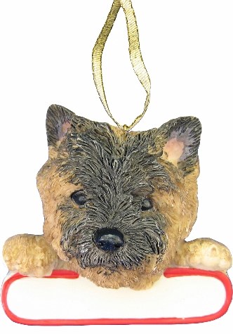 THIS CHRISTMAS ORNAMENT IS MADE OF RESIN AND MEASURES APPROX. 2.25" X 2.5" IF A CAIRN TERRIER IS YOUR FAVORITE PET, THEN THIS ORNAMENT IS FOR YOU. IT CAN BE PERSONALIZED WITH YOUR PETS NAME.