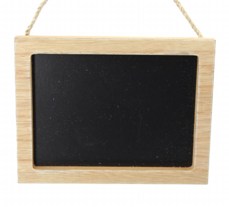 THIS CHRISTMAS ORNAMENT IS OF A TAN CHALKBOARD. IT MEASURES APPROX. 5.25" X 4" X 0.5" AND IS MADE OF MDF.