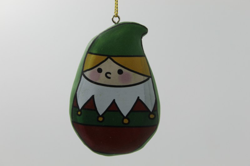 THIS CHRISTMAS ORNAMENT IS OF AN ELF. IT MEASURES APPROX. 3" X 2" AND IS MADE OF RESIN.