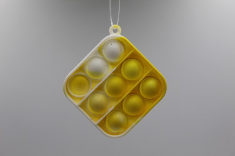 THESE ORNAMENTS ARE OF THE VERY POPULAR FIDGET POP UP's. tHEY ARE MADE OF PLASTIC AND ARE 2" SQUARE. Located in the Christmas Shoppe in room B, on a wall - board number 155 Printed maps are available to assist in finding it.