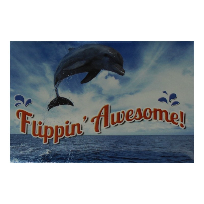 THIS MAGNET MEASURES 3" X 2", "FLIPPEN AWESOME". DOLPHIN JUMPING OUT OF THE WATER.