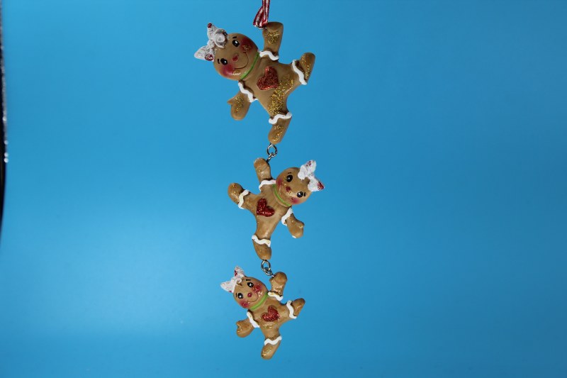 THIS CHRISTMAS ORNAMENT IS MADE OF RESIN, IT MEASURES APPROX. 6.5" X 2" AND IS OF GINGERBREAD.