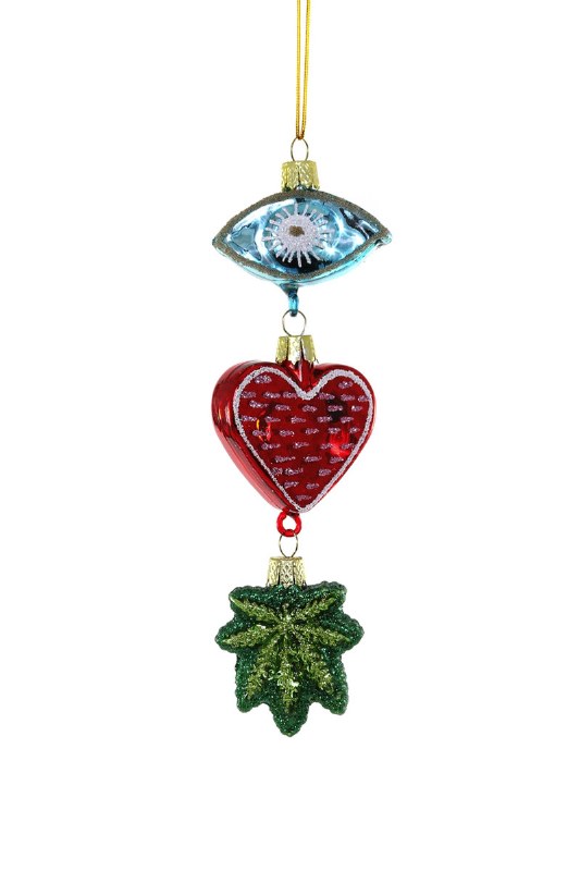 THIS CHRISTMAS ORNAMENTS MADE OF GLASS AND MEASURES APPROX 5.75" X 1.5". "I HEART WEED" Located in the Christmas Shoppe in room C, on a wall - board number 327. Printed maps are available to assist in finding it.