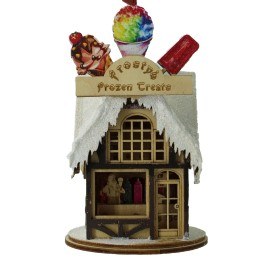 THIS CHRISTMAS ORNAMENT IS OF FROSTY'S FROZEN CREATE THAT MEASURES APPROXIMATELY 3" X 4.75" AND IS MADE OF WOOD.