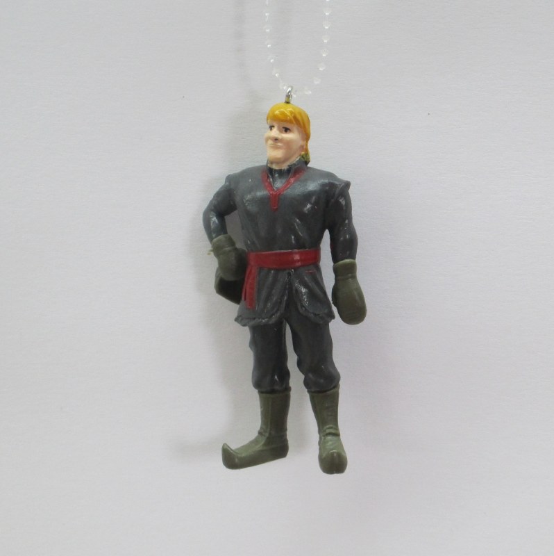 THIS CHRISTMAS ORNAMENT IS MADE OF POLY RESIN AND MEASURES APPROX. 2.5" X 1.25". IT IS OF KRISTOFF FROM THE MOVIE FROZEN.