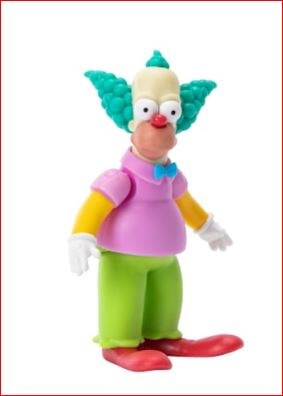 THIS CHRISTMAS ORNAMENT IS OF KRUSTY THE CLOWN FROM THE CARTOON THE SIMPSONS. IT MEASURES APPROX. 3" X 2" X 1" AND IS MADE OF PLASTIC.