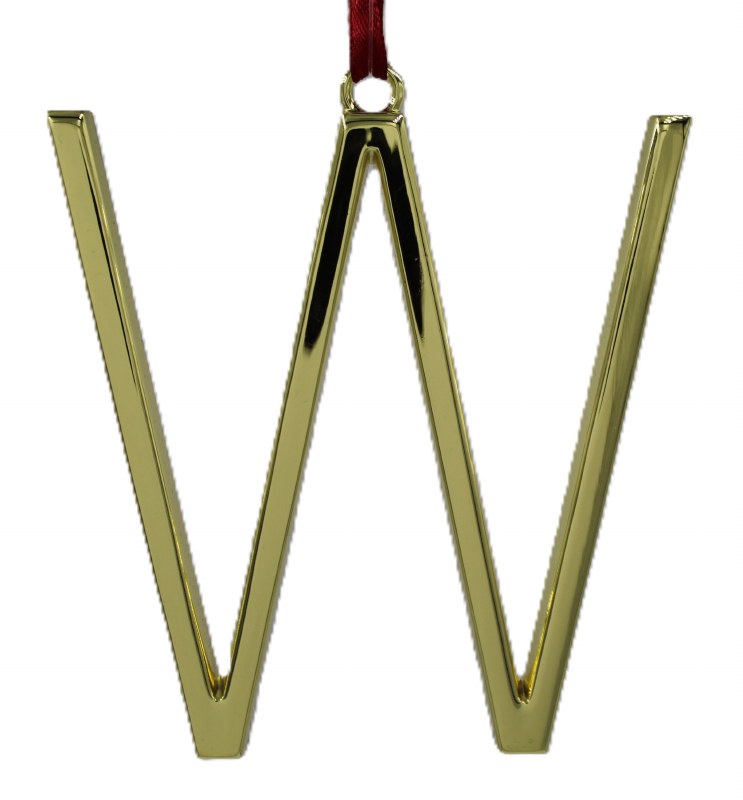 THIS CHRISTMAS ORNAMENT IS OF THE LETTER W. IT MEASURES APPROX. 4" X 4" X 0.25" AND IS MADE OF METAL.