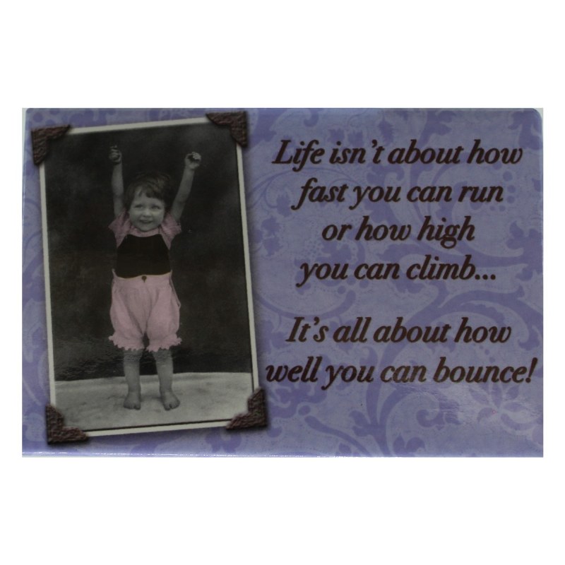 THIS MAGNET MEASURES 2" X 3","LIFEISN'T ABOUT HOW FAST YOU CAN RUN OR HOWHIGH YOU CAN CLIMP... IT'S ALL ABOUT HOW WELL YOU BOUNCE!"