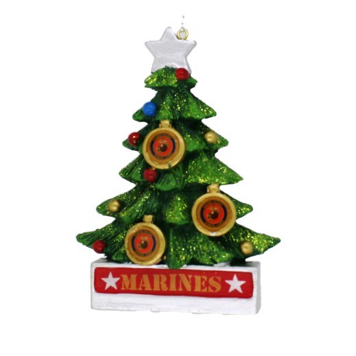 THIS CHRISTMAS ORNAMENT IS MADE OF RESIN AND MEASURES APPROX. 4.5" X 3.25". IT REPRESENTS MARINES THE FEW, THE PROUD.