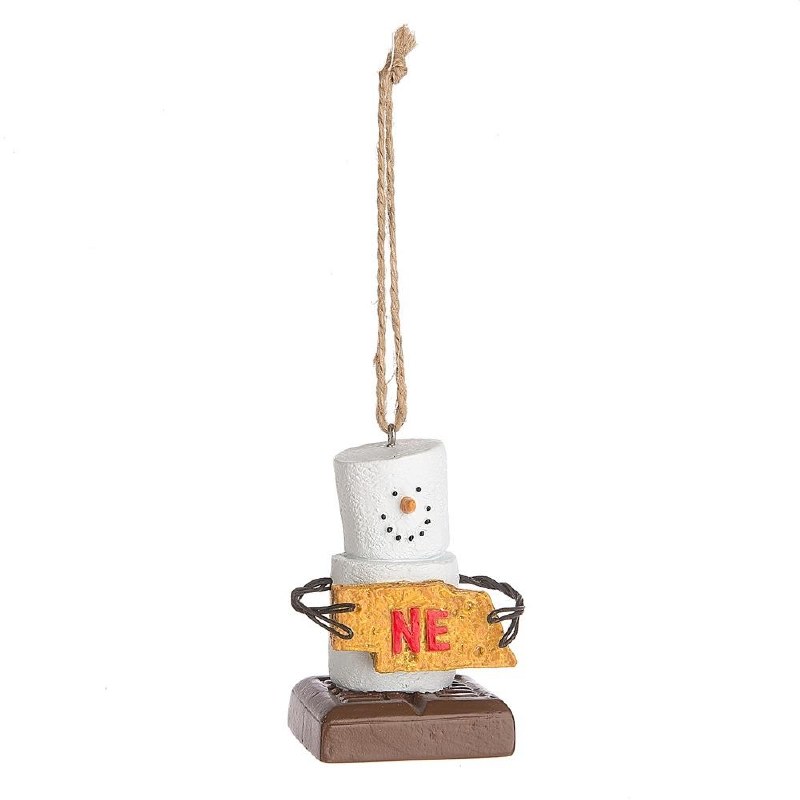 THIS CHRISTMAS ORNAMENT IS MADE OF RESIN AND MEASURES APPROX. 2.5" X 1.5" AND IS OF A SMORE STATE