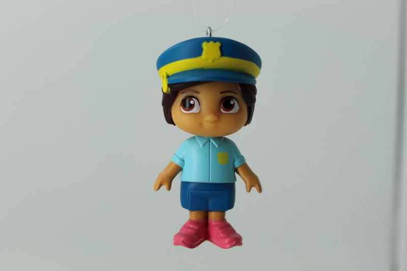 THIS CHRISTMAS ORNAMENT IS OF NINA FROM COCOMELON. IT MEASURES APPROX. 2.75" X 1.5" AND IS MADE OF A POLY RESIN.