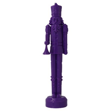 THIS CHRISTMAS ORNAMENT IS OF A PURPLE NUTCRACKER. IT MEASURES APPROX. 5.75" X 1.5" AND IS MADE OF A HEAVY PLASTIC.