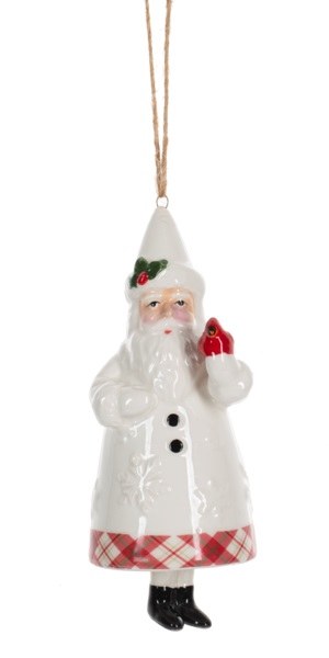 THIS CHRISTMAS ORNAMENT IS OF SANTA. IT MEASURES APPROX. 1.75" X 6" AND IS MADE OF CERMIC.