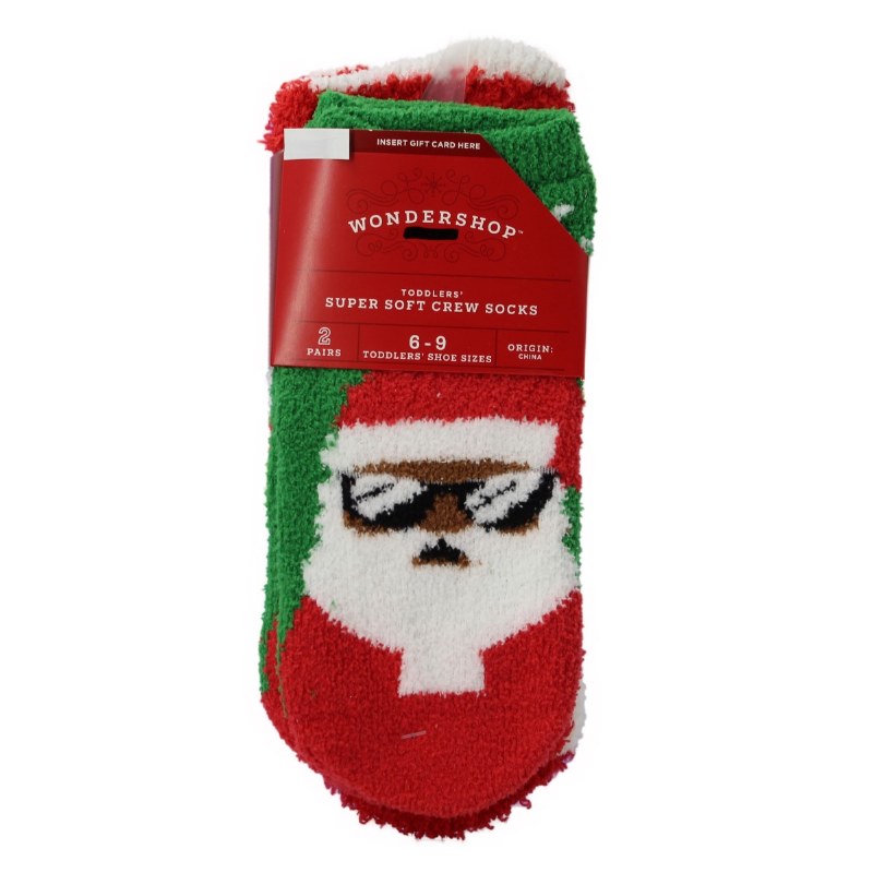 THIS IS A TWO PACK OF SUPER SOFT CREW SOCKS. THEY ARE 6-9 TODDLER SIZE. THEY ARE MADE OF 99% POLYESTER, 1% SPANDEX.