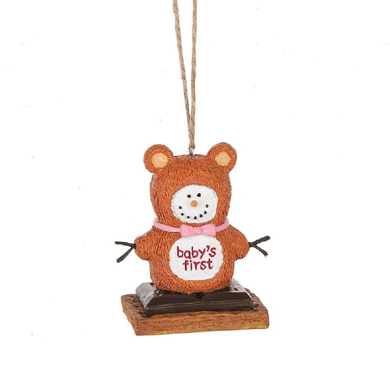 THIS CHRISTMAS ORNAMENT IS MADE OF RESIN AND MEASURES APPROX. 2.75" X 1.75" AND IS OF A SMORE DRESSED AS A BEAR.