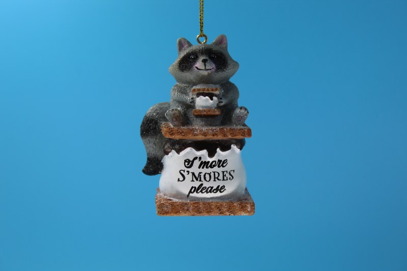 THIS CHRISTMAS ORNAMENT IS OF A SMORE IT IS MADE OF RESIN AND MEASURES APPROX. 3" X 2". "S'MORE S'MORES PLEASE"