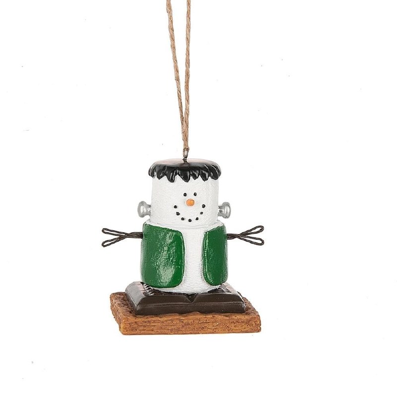 THIS CHRISTMAS ORNAMENT IS FROM THE SMORES COLLECTION IT IS MADE OF RESIN AND MEASURES APPROX. 2.25" X 1.75" AND IS OF FRANKENSTEIN.