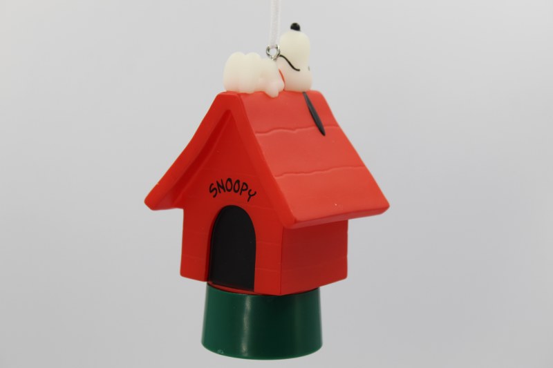 THIS RESIN CHRISTMAS ORNAMENT IS FROM THE CARTOON CHARLIE BROWN. THIS PARTICULAR FIGURE IS SNOOPY LAYING ON HIS RED DOG HOUSE. IT MEASURES APPROX. 4" X 2" .