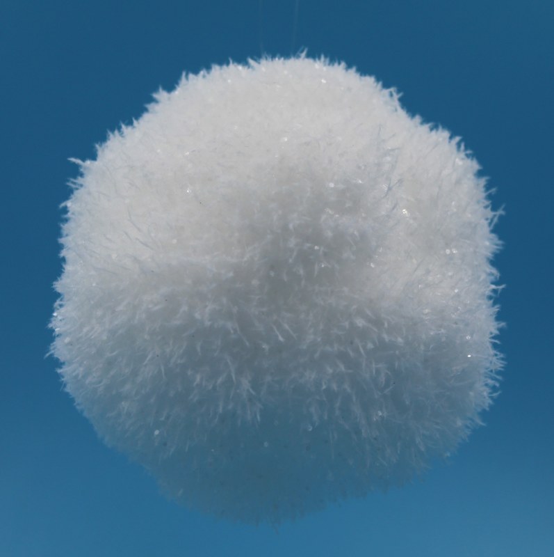 THIS CHRISTMAS ORNAMENT IS OF A SNOWBALL. IT MEASURES APPROX. 4" IN DIAMETER AND IS MADE OF STYROFOAM. THIS IS ALSO SHATTER PROOF.