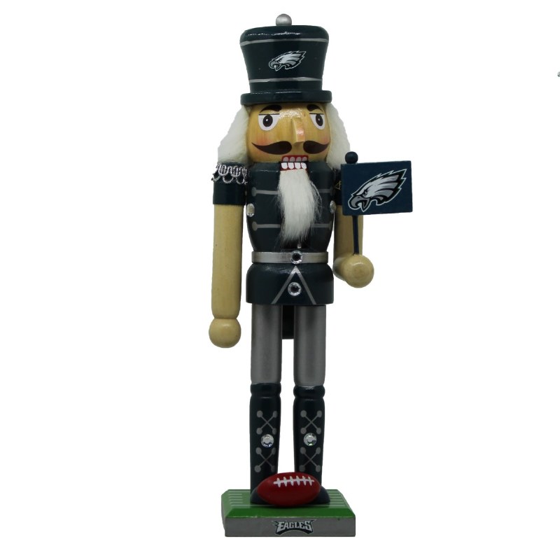 THIS WOODEN NUTCRACKER STANDS APPROXIMATELY 12" x 3.5", AND IS A PHILADELPHIA EAGLES NUTCRACKER.
