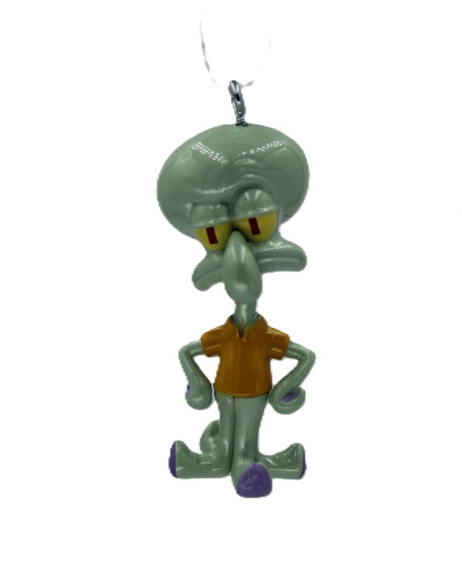 THIS CHRISTMAS ORNAMENT IS OF SQUIDWARD FROM SPONGEBOB SQUAREPANTS. IT MEASURES APPROX. 2.5" X 1.25" X 1" AND IS MADE OF METAL.