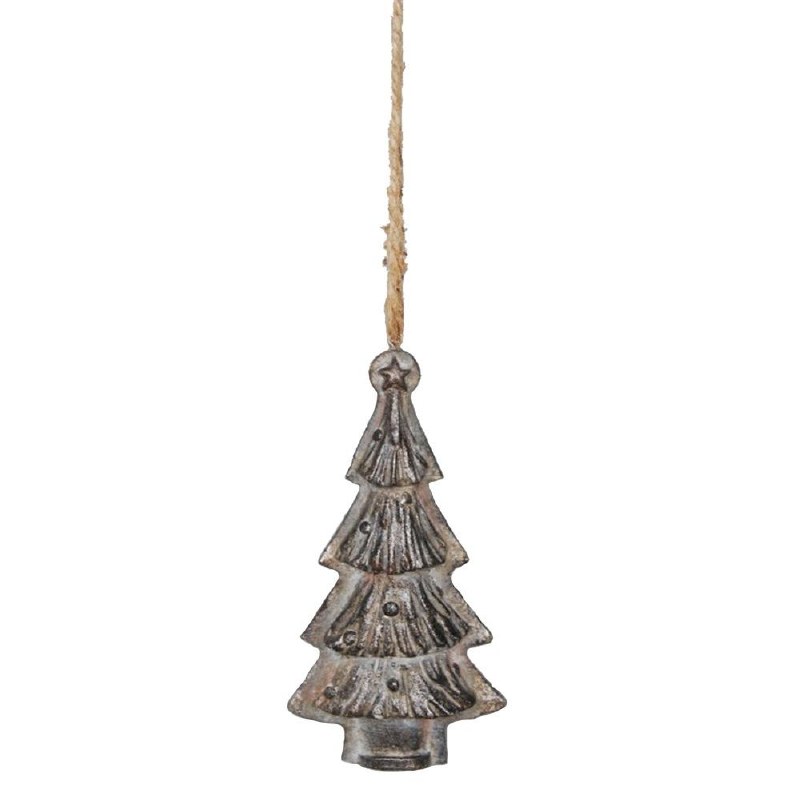 THIS CHRISTMAS ORNAMENT IS MADE OF RESIN AND MEASURES APPROX. 4.75" X 2.5" AND IS OF A GREY TREE.