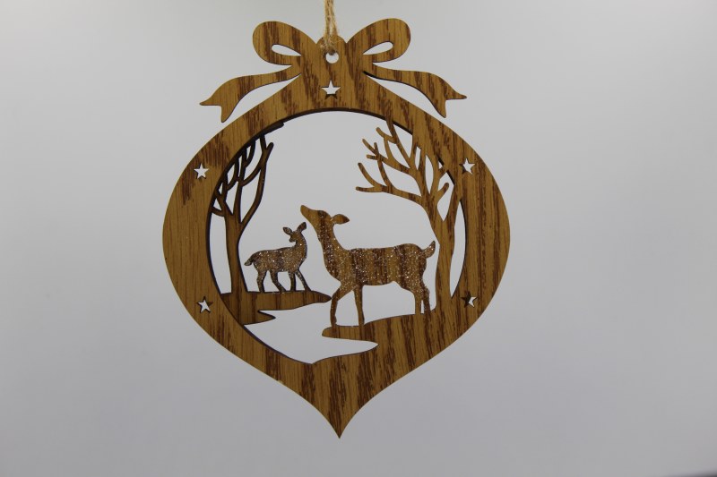 THIS CHRISTMAS ORNAMENT IS MADE OF WOOD AND MEASURES APPROX. 5.25" X 4.5". AND IS 2 DIMENSIONAL.