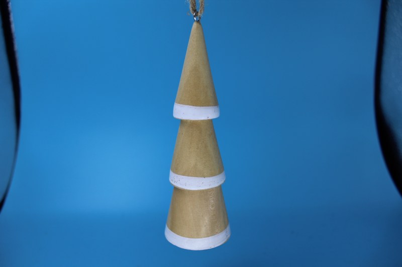 THIS CHRISTMAS ORNAMENT IS OF A WOODEN TREE. IT MEASURES APPROX. 4.5" X 1.5". Located in the Christmas Shoppe in room F, on a wall - board number 709 Printed maps are available to assist in finding it.