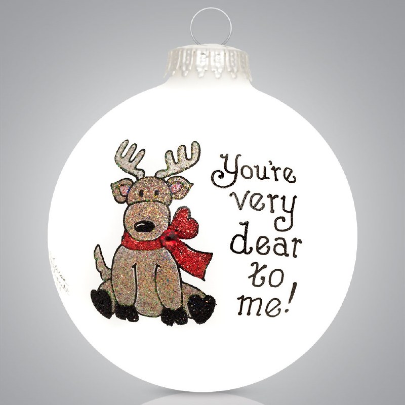 THIS CHRISTMAS ORNAMENT IS FROM THE COLLECTION HEART GIFTS BY THERESA. . ALL ORNAMENTS ARE MADE IN THE USA. APPROX SIZE IS 3.5" X 3.5 AND MADE OF GLASS. EACH BALL HAS HAND APPLIED SWAROVSKI CRYSTALS.